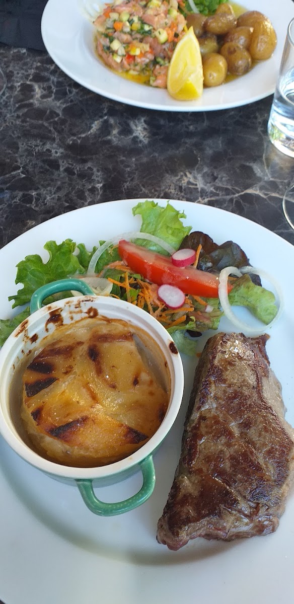 Seafood lovers will be pleased with the Escargots de Bourgogne, a deliciously indulgent starter that features snails baked in a garlic and parsley butter, a true French delicacy. Another standout is the Tartare de Saumon Avec Pommes de Terre Grenaille, a fresh salmon tartare served with crispy baby potatoes. It’s light yet satisfying, with a perfect balance of flavors. For a lighter option, the Salade Lyonnaise Rajout Toast Chèvre, a Lyonnaise salad with goat cheese toast, is a delightful choice that combines freshness with rich, savory notes.